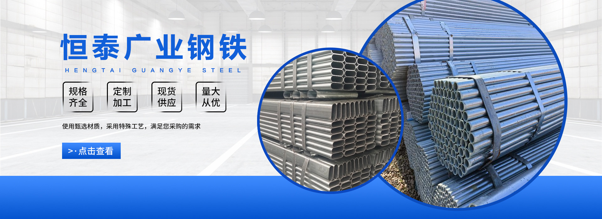 天津恒泰廣業(yè)鋼鐵有限公司是一家從事鋼鐵流通企業(yè)。本公司經(jīng)過(guò)多年的努力已在華東、華北、華南地區(qū)建立起良好的信譽(yù),不僅在同行市場(chǎng)營(yíng)銷上取得成績(jī),而且將直銷作為公司主要銷售模式,為直接用戶提供優(yōu)惠價(jià)格、合格品質(zhì)的鋼材資源,直接降低了廣大用戶的采購(gòu)成本,贏的廣大鋼材采購(gòu)商的信任。 天津恒泰廣業(yè)鋼鐵有限公司主營(yíng)大棚管,鍍鋅管,鍍鋅方矩管,鍍鋅帶圓管,鍍鋅帶方矩管,鍍鋅H型鋼,鍍鋅角鋼,鍍鋅槽鋼,鍍鋅扁鋼,鍍鋅圓鋼等.供應(yīng)溫室大棚,幕墻公司,公路設(shè)施,鋼構(gòu)工程用材, 產(chǎn)品規(guī)格范圍: 鍍鋅鋼管4分-10寸,鍍鋅方管:20*20—800*800,選擇天津恒…